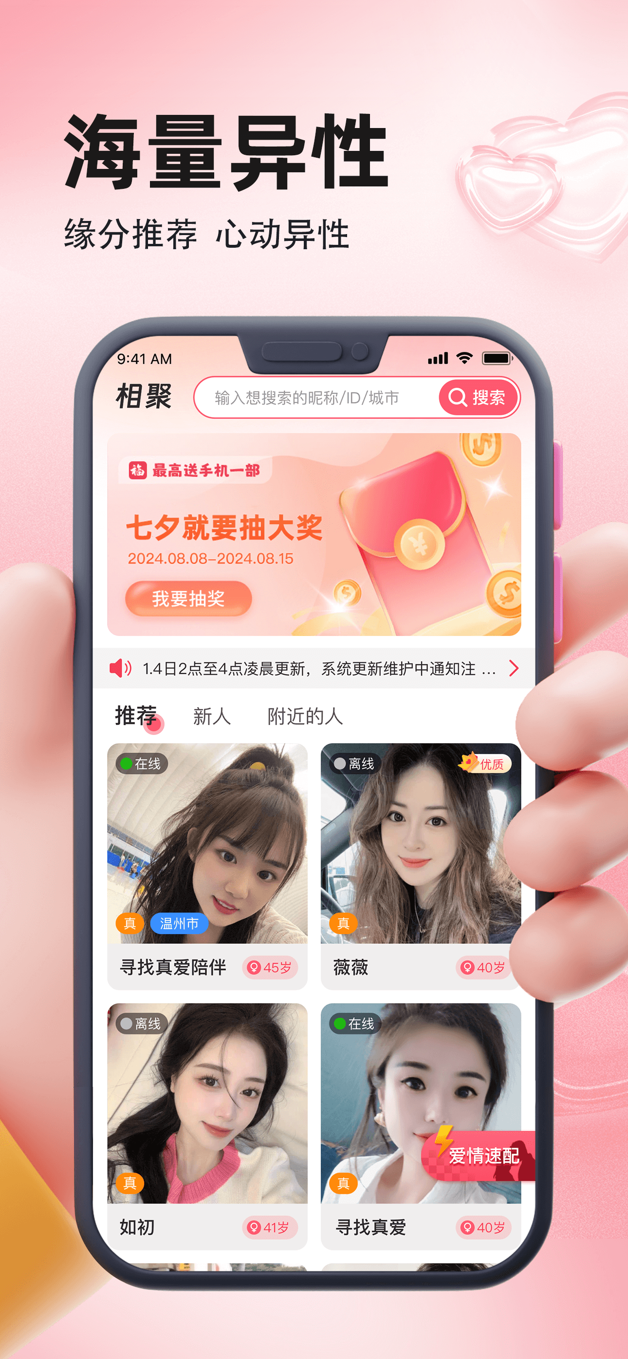 相聚是针对国内大龄单身男女,单身中老年而研发的一款视频,语言,文字等多种用途的交友聊天软件。